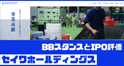 セイワホールディングス(523A)IPOのBB(ブックビルディング)が、明後日(3月11日)からスタートします。セイワホールディングスは事業承継を通じて後継者不足の中小企業を支援するプラットフォームを提供しています。