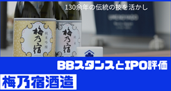 梅乃宿酒造(559A)IPOのBB(ブックビルディング)が、翌週の4月9日からスタートします。梅乃宿酒造は人気の「梅乃宿あらごしシリーズ」をはじめ、酒類の製造及び国内外での販売等の事業を行っています。