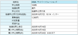 そして、私のサイバーソリューションズIPOの抽選結果は以下の通りでした。