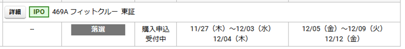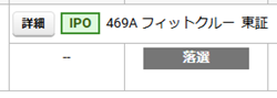 主幹事のみずほ証券は残念ながら補欠にも引っかからずに落選です。また、フィットクルーIPOは松井証券や楽天証券などにも申し込みましたが全滅です。