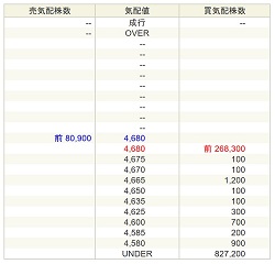 フラーIPOは上記のように本日の気配上限価格である4,680円に張り付いたままだったので、合致点(始値予想)は不明です。
