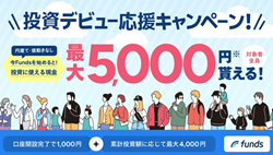 固定利回りの資産運用「Funds(ファンズ)」が、最大で5,000円が貰える投資デビュー応援キャンペーンを実施中です。