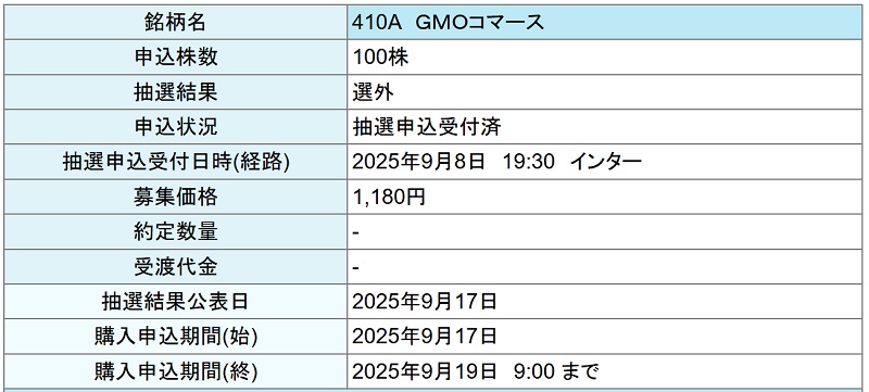 GMOコマース(410A)IPOとオリオンビール(409A)IPOの抽選結果が発表されました。