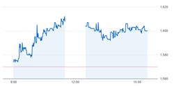 日東工器は分売価格(1,523円)を上回る1,570円で始まり、そこから徐々に値を上げながら1,615円の高値を付け、そこからやや値を下げながらも1,600円で取引を終えています。