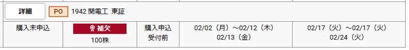 SMBC日興証券はIPOでもお決まりの補欠=落選コパターンでした。また、関電工POはみずほ証券にも申し込みましたが落選でした。