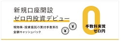 新規口座開設でゼロ円投資デビューでは、証券総合取引口座を新たに開設された方に、申込日の翌月末までの日本株の現物株式買付手数料および投資信託買付時の申込手数料が全額キャッシュバック(税込)されます。