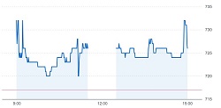 室町ケミカルは分売価格(696円)を大幅に上回る732円で始まり、その後は725円前後を推移しながら726円で取引きを終えています。
