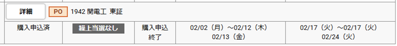また、野村證券で補欠当選していた関電工POも残念ながら繰り上がりませんでした。