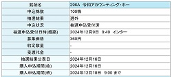 令和アカウンティング・ホールディングス(296A)IPOの抽選結果が発表されました。