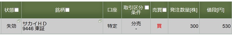 サカイホールディングスの立会外分売は手頃な価格だっため、積極的に参加しましたが全滅でした。